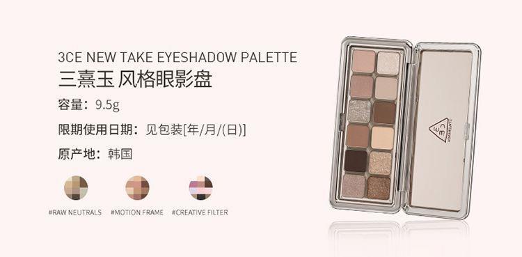 【包邮】3CE 12色杏粉盘9.5g 风格眼影盘